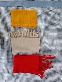 3 sciarpe invernali unisex in colorazione tinta unita, una gialla, una rossa e una bianca. Potete scegliere quale indossare in base a colore, stile e confort in base all’occasione. Dimensioni moderate, adatte per la maggior parte delle persone. Spessore adatto principalmente alle stagioni più fredde.