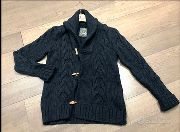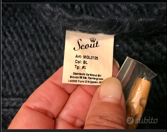 SUPERFASHION e RAFFINATO giaccone confezionato a Montgomery, chiusura tramite alamari realizzato a lavorazione lana intrecciata colore blue scuro, polsini ripiegabili. Articolo originale collezione SCOUT. Veste taglia XL. CONDIZIONI: indossato di rado ottimo stato