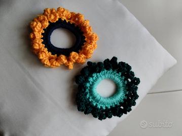 Originali elastici per capelli lavorati ad uncinetto, nuovi. Il prezzo della coppia è 4 €