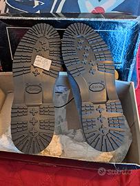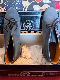 Sebago modello polacchino (desert boot) in camoscio (suede) di colore blu/grigio fumo. Articolo nuovo taglia: 6 US Women (corrispondente a un 36 / 36.5 EU) calzata pianta larga (Wide) per un maggiore comfort.