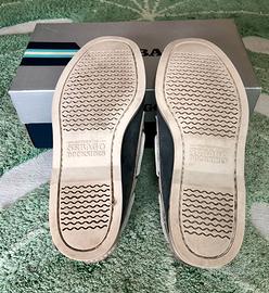 Colori blu marino, beige, bianco come da foto. Condizioni ottime, usate pochissimo perché acquistata misura errata. Calzano bene per una taglia 41, anche Sebago le indica come 41.5 .