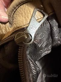 In pelle martellata beige, colore ideale per qualsiasi look. Usato ottimo, presenta leggeri segni di normale utilizzo. Se davvero interessati sono disponibili foto più dettagliate al riguardo. Su questa piattaforma purtroppo non si ha la possibilità di illustrare l’articolo come merita per cui ho preferito inserire quelle che dimostrano l’originalità del medesimo. Targhetta in argento Approssimativamente anno 2000 Misura da steso circa: Larghezza 38 Altezza 30 Tracolla 86 Prezzo non trattabile.