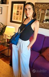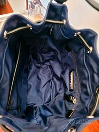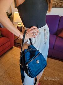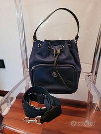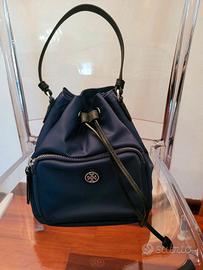 Borsa a secchiello "VIRGINIA" Tory Burch" - Prodotto realizzato in nylon - Blu Reale, Chiusura a coulisse, Manico Superiore, Tracolla Regolabile Rimovibile, una tasca zip frontale, dettaglio logo argentato frontale, uno scomparto interno principale. Blu reale, placca con logo, tasca a marsupio frontale con zip, tracolla rimovibile, manico tondo, chiusura a coulisse e scomparto unico. L 22.5 cm X H 27.5 X P 12 CM. Comprata il 10 ottobre a 325 euro. Non più restituibile purtroppo. Chi capisce l'occasione unica approfitti subito.