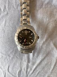 Corpo e cinturino in alluminio anodizzato naturale, leggerissimo, sub 10 atm, 100mt, precisissimo movimento al quarzo, cinturino con chiusura a scatto, completo di 4 maglie di ricambio/allungamento nuove mai montate. Pile da sostituire con bassissima spesa. Per sportivi e amanti del marchio.