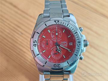 Sector 255 Chronograph con quadrante rosso, un modello iconico e molto ricercato per la sua colorazione particolare e la qualità costruttiva. Manutenzione eseguita a Marzo 2026: Batteria nuova. Guarnizione fondello ripristinata con sigillante. Pulizia cassa e bracciale. Specifiche: Movimento cronografo Miyota 0S60. Cassa acciaio 38mm e ghiera girevole. Bracciale originale logato con prolunga sub. Fondello a vite. L'orologio funziona bene; presenta lievi segni d'uso (hairlines) come da foto. --- Oggetto da raccolta privata. Non conosco data ultima revisione. WR non garantita: evitare contatto acqua. Foto parte integrante della descrizione. Venduto senza scatola/documenti. Chiedere info prima dell’acquisto. Spedizione e consegna: Spedizione tracciata. Responsabilità acquirente monitorare tracking. In caso di mancata consegna/ritiro/rifiuto, rimborso al netto di spese e commissioni (andata/ritorno). Resi e contestazioni: Non ammessi resi, salvo difformità da foto/descrizione. Note legali: Vendita tra privati (Art. 67 T.U.I.R.), no lucro, no fattura. L’acquisto implica l’accettazione delle condizioni.