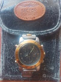 Sector adventure 2000, cronografo al quarzo con custodia in pelle e cuoio, libretto di istruzioni e garanzia, water resistant 10 atm, fondale nero. Orologio da pulire e revisionare, venduto non funzionante ad euro 100 compresa spedizione.
