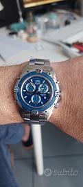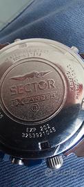 Sector Expander 202 in eccellenti condizioni, dotato di movimento Miyota 3S10 interamente revisionato e perfettamente funzionante in tutto. Cronografo con suoneria, allarme, sveglia, timer, conto alla rovescia, calendario e indicazione di scarica della batteria. Orologio completamente smontato, pulito e lubrificato, pulsanti puliti e lubrificati scorrono perfettamente. Diametro cassa 40mm senza corona. Ghiera girevole unidirezionale 60 scatti perfettamente funzionante. Luminescenza ancora ottima. Bracciale originale adatto a polsi fino a 18.5 cm., probabile arrivo di altre maglie. Vetro nuovo. Batteria Renata nuova.