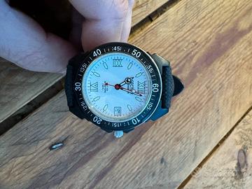 Vendo orologio Sector Expander originale, movimento al quarzo, con cassa in acciaio inox e impermeabilità fino a 50 metri. Quadrante chiaro con numeri romani, indici e lancette luminescenti, ghiera nera con scala minuti e datario a ore 3. Modello dal design sportivo ma classico, tipico della produzione Sector, adatto sia all’uso quotidiano sia a chi cerca un orologio affidabile e riconoscibile. L’orologio è usato e presenta normali segni del tempo, come visibili in foto. Monta cinturino in tessuto con fibbia ad ardiglione.