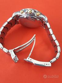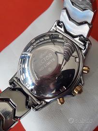 Sector Golden Eagle 1500 Chrono Automatico. L’orologio ha una cassa di acciaio di 40 mm esclusa la corona che ospita un movimento automatico svizzero Eta Valjioux 7750 con 25 gioielli. Il quadrante di colore bianco è protetto da un vetro zaffiro, ha indici in oro. La corona a vite, dotata di spallette protettive, garantisce all’orologio una resistenza all’acqua di 200 metri (20 ATM). L'orologio ha una ghiera unidirezionale a 60 clic che gira perfettamente. Questo automatico Sector Golden Eagle è dotato dell'originale bracciale Sector in acciaio inossidabile con doppia chiusura di sicurezza. L'orologio Sector viene fornito con scatola Sector, contro scatola, certificato di garanzia internazionale dell'epoca in bianco e relativi manuali. Inoltre, a corredo, è presente anche il suo cinturino in pelle color nero NUOVO, mai utilizzato. Lo stato dell'orologio è ottimo, senza apparenti graffi o segni di usura. La revisione completa è stata fatta a novembre 2025