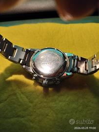 Orologio molto bello,funzionante con batteria nuova, l'inserto a ore 11 sparito il cronometro mai usato non spedisco preferisco consegna breve mani.