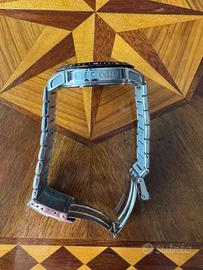 Il cinturino in acciaio inossidabile è caratterizzato da una pratica chiusura deployante.