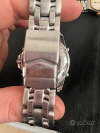 Vendo bellissimo Sector Ego Chrono-Alarm, un vero classico dell'epoca "No Limits", sinonimo di robustezza e stile sportivo. L'orologio è in ottime condizioni estetiche e funzionali, perfetto per chi cerca un pezzo affidabile e di carattere. Caratteristiche Principali: • Movimento: Quarzo Swiss Made (precisione e affidabilità). • Vetro: Zaffiro (Sapphire Crystal), antigraffio e perfetto. • Funzioni: Cronografo e doppia sveglia (display digitali a ore 4 e 8). • Cassa e Bracciale: Acciaio inossidabile con chiusura originale logata. • Impermeabilità: 200 metri (20 ATM). • Dettagli: Ghiera girevole unidirezionale e scala tachimetrica interna. L’orologio è stato tenuto con cura: il vetro è immacolato e la cassa presenta solo lievissimi segni di utilizzo che ne testimoniano l'originalità. Prezzo: €185 (leggermente trattabile) Disponibile per scambio a mano o spedizione tramite TuttoSubito. .