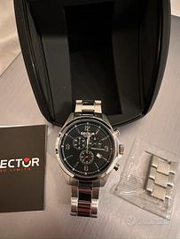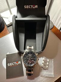 Sector No Limits cronografo al quarzo, con cassa e bracciale in acciaio, quadrante nero e datario.