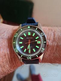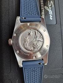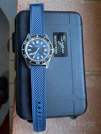 Orologio Seestern S404 dive 200mt Seiko 62 Mas hommage watch sub 200mt , movimento automatico Seiko NH35 , vetro zaffiro lunetta e indici full lume. Condizioni perfette pari al nuovo. Con scatola documento e istruzioni.