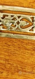 Segnalibro con elegante decoro floreale in argento. punzonatura in foto. Bellissimo oggetto come idea per la festa della mamma 💞. Mai stato utilizzato. Posso spedire confezionato con elegante sacchettino in tessuto.