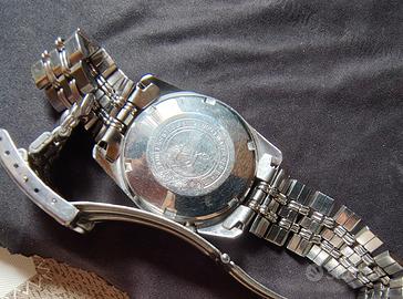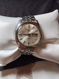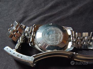 Orologio funzionante, bracciale corvo. completo, originale in ogni sua parte. Vero vintage del 1970 mai lucidato marciante senza graffi particolari se non uno sul vetro in plexiglass, rimovibile con pasta abrasiva. nessun segno di infiltrazioni di umidità non si garantisce precisione né tenuta all'acqua. funzionante anche datario e giorno settimana. made in Japan. sono un esperto di orologi e collezionista.