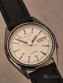 🇯🇵 Seiko 5 "Optical White" 1989 – Revisionato 2025 In vendita un magnifico Seiko 5 Automatico (Ref. 7009-6000) del 1989. Un orologio che non ha bisogno di presentazioni, ma che in questa configurazione di quadrante e condizioni è davvero difficile da reperire. Carattere vintage con l'affidabilità di un orologio appena uscito dal laboratorio. Condizioni e Lavori eseguiti: * Meccanica: Movimento automatico cal. 7009 completamente revisionato a fine 2025. Tiene il tempo perfettamente. * Funzioni: Doppia data (giorno/data). Rimessa rapida del giorno della settimana tramite pressione della corona e rimessa della data tramite rotazione. * Vetro: Originale Seiko nuovo, appena sostituito, perfetto e senza graffi. * Impermeabilità: Montate guarnizioni nuove, pronto per l'uso quotidiano. * Estetica: Cassa in acciaio in condizioni spettacolari. Quadrante bianco ottico con minuteria "railway" fitta e dettagliatissima. Indici applicati acciaio/nero e lancette coordinate per una leggibilità da manuale. Dimensioni: * Diametro: 34,5 mm (esclusa corona). * Lug-to-Lug: 39 mm. * Spessore: 10 mm. * Cinturino: Nuovo in vera pelle nera, morbido e di qualità. Un orologio che emana una qualità costruttiva che i Seiko 5 moderni faticano a eguagliare. Un pezzo di storia giapponese al polso. #seiko #seiko5 #seikovintage #seiko7009 #automaticwatch #vintagewatch #orologioautomatico #madeinjapan #1989 #vintagestyle #dresswatch #orologiodapolsio #seikocollector #watchrestoration #servicedwatch #optic