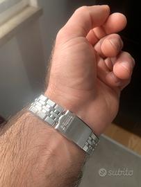 Movimento automatico a 23 rubini con funzione fermo macchina e bracciale originale marchiato "Seiko Actus". Orologio in ottime condizioni estetiche, con quadrante silver sunburst perfetto e corona a ore 4.