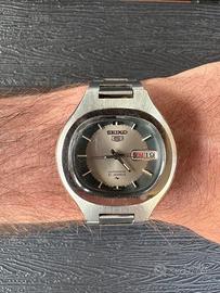 Vendo orologio automatico Seiko 5 referenza 7019-5010, originale vintage anni ‘70, in buone condizioni generali. L’orologio è funzionante e mantiene correttamente l’ora. Presenta normali segni del tempo su cassa e bracciale, coerenti con l’età. Caratteristiche principali: • Movimento automatico Seiko calibro 7019 (21 rubini) • Cassa in acciaio inox • Diametro cassa: 39 mm • Bracciale originale Seiko in acciaio • Datario completo: giorno della settimana + numero del giorno • Vetro Hardlex • Fondello originale con referenza 7019-5010 Note:La corona risulta leggermente dura durante la regolazione dell’orario, ma la funzione è operativa. La riserva di carica è di circa 11 ore, quindi probabilmente beneficerebbe di revisione. Ottima scelta per appassionati di orologi vintage Seiko 5 o per chi cerca un automatico classico dal design anni ’70. Disponibile per ulteriori foto o informazioni. #seiko #seiko5 #seikovintage #orologiovintage #automaticwatch #vintagewatch #watchforsale #seikoautomatic #vintageseiko #watchcollector #orologio #orologiuomo #classicwatch #japanwatch #anni70 #steelwatch #mechanicalwatch #affare #mercatinovintage #subito