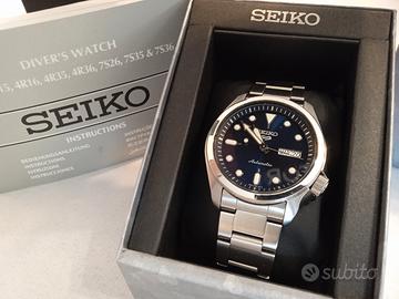 Vendo splendido Seiko 5 Automatic con elegante quadrante blu effetto sunburst e bracciale in acciaio inox. Orologio automatico iconico della casa giapponese, perfetto sia come daily watch che come primo automatico da collezione.L’orologio si carica automaticamente con il movimento del polso. È possibile anche la carica manuale ruotando la corona. Il movimento 4R36 è noto per precisione e affidabilità.