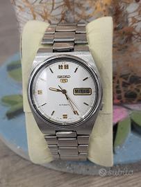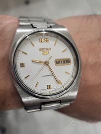 Seiko 5 Automatic perfettamente funzionante Quadrante bianco con indici dorati Completamente originale ,Cinturino compreso