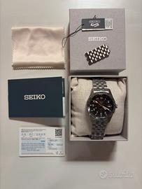 Vendo questo Seiko 5 Field GMT nuovo appena acquistato dal Giappone (referenza giapponese SBSC011), mai indossato, completo di scatola originale, manuale, garanzia Seiko di 3 anni e pellicole protettive, L orologio é già regolato per un polso di circonferenza 16,5mm, su richiesta posso regolarlo personalmente a seconda del polso dell interessato.