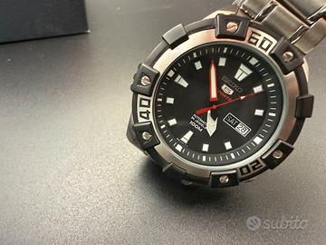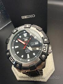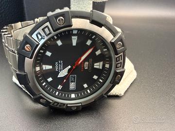 Vendo Seiko 5 Sports automatico NUOVO, mai indossato, condizioni perfette. Orologio originale Seiko con movimento automatico a vista dal fondello trasparente. Caratteristiche principali: * Marca: Seiko * Linea: Seiko 5 Sports * Movimento / Calibro: Seiko 4R36 automatico * 24 rubini * Carica automatica + manuale * Funzione hacking (fermo macchina) * Datario giorno + data * Impermeabilità: 100 metri (10 BAR) * Cassa in acciaio * Lunetta sportiva * Bracciale in acciaio * Fondello a vista * Quadrante nero con indici luminosi