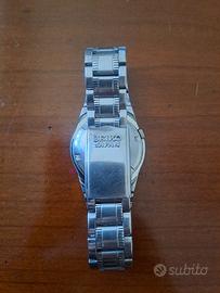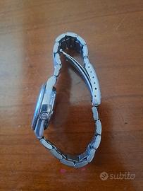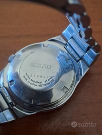 Seiko 5 vintage del 1983 circa, modello ormai raro, unisex con cassa 32 mm, doppio datario inglese/arabo, tutto originale con cinturino marchiato Seiko Japan, movimento 21 rubini, referenza 4227-00C0, con normali segni d'utilizzo ma esente da difetti. Funzionante, necessita rettifica