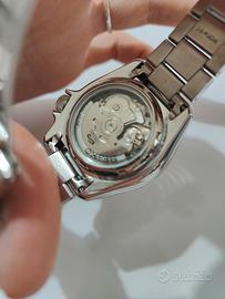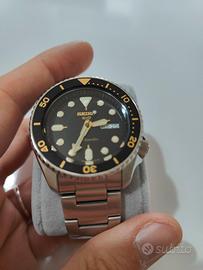Per cambio tipologia vendo Seiko 5 sport diver, in colorazione nero e oro. Usato una manciata di volte, senza graffi o segni di usura, sempre tenuto in teca con sali anti umidità. Completo di scatola, contro scatola e scontrino di acquisto.