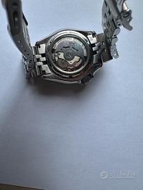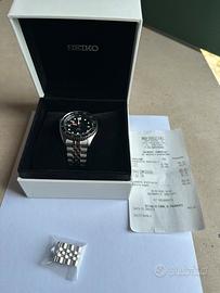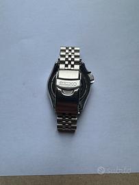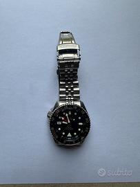 Vendo splendido Seiko 5 GMT (referenza SSK001K1) con iconica lunetta bicolore nero e grigio. L'orologio è un vero "traveler watch" con funzione GMT per il secondo fuso orario, animato dal precisissimo calibro automatico Seiko 4R34. Condizioni: Ottime, indossato pochissimo (presenti solo lievi hairllines da normale utilizzo sulla chiusura). Bracciale: Jubilee originale con tutte le maglie incluse. Dettagli: Vetro Hardlex con lente ciclope, impermeabilità 100m, lunetta rotante bidirezionale. Disponibile per consegna a mano o spedizione tracciata. Prezzo leggermente trattabile. No scambi.