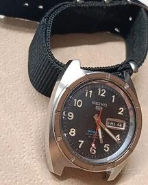 vendo seiko 5 sports vintage anni 70 in stile militare. Si presenta in ottime condizioni estetiche nonostante la sua età ma richiede comunque della revisione. sono a disposizione per ulteriori informazioni.