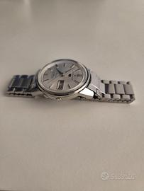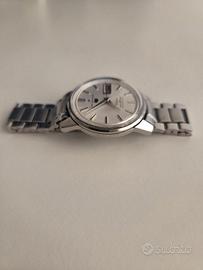 Vendo Seiko 5 Sportsmatic Deluxe Waterproof 30m 7606-7971. Originale al 100%. Questo modello è il 1° Seiko 5 della storia con cassa in acciaio. Le condizioni dell'orologio sono Ottime, come si puó notare dallo stato praticamente perfetto del quadrante, fondello inciso ancora parzialmente visibile e con una cassa che presenta ancora gli spigoli vivi di un tempo, e con il suo bracciale originale, logo "5" a scudo applicato e la trottola che simboleggiava il tipo di movimento automatico. Data della revisione sconosciuta, tuttavia funziona tutto senza problemi. Lo scarto giornaliero è sconosciuto. Si vende con la formula visto e piaciuto, come da foto.