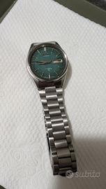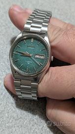 Seiko automatico da uomo, modello vintage raro con quadrante verde testurizzato.