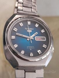 bellissimo e insolito seiko 5 vintage anni 70 con movimento automatico revisionato, la cassa ricorda molto quella dello zenith defy vetro minerale nuovo originale bracciale originale non faccio scambi o sconti