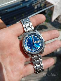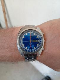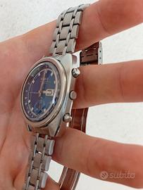 Vendo o valuto scambi orologio Automatico Seiko 6139 6010 (6138) detto Bruce Lee cronografo automatico iconico. Prima serie del 1970 rara, condizioni ottime , completamente originale (quadrante, lancette, indici movimento ecc.) revisionato lo scorso anno tiene il tempo benissimo molto più preciso di altri miei automatico recenti. Funzioni crono e tasti perfettamente funzionanti. La lancetta del cronometro azzera perfettamente. Ho fatto montare un vetro minerale nuovo fondo di magazzino per valorizzare il quadrante stupendo, ma ho il vetro originale ( che è in ottime condizioni) da darvi. Cinturino riedizione moderna logato Seiko molto bello e conforme alla linea classica, completo di maglie aggiuntive. Cassa da 39mm . Valuto scambi con diver automatico, Squale , prospex 62mas o altro anche vintage. Vendita tra privati con tutte le regole del caso. Preferisco scambiare a mano ma posso spedire con posta assicurata. Pagamento PayPal o bonifico.