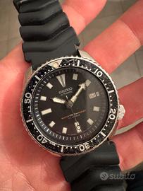 Vendesi Seiko scuba ref 7002 -7001 con il suo cinturino originale in gomma, ottime condizioni e funzionante, recentemente revisionato con prova sub. Disponibile per visione su roma oppure spedizione previo pagamento.