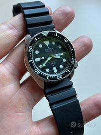 Cedo dalla mia personale collezione raro Seiko diver quartz transizionale referenza 7548-7010 “Brian May” prodotto nel maggio del 1985 e destinato al solo mercato giapponese. Una vera rarità all’interno dei divers Seiko. È famoso per essere l’orologio indossato dal chitarrista dei Queen che lo acquistò durante un tour in Giappone. Originale e perfettamente funzionante in ogni sua parte, l’orologio è usato ma in condizioni più che ottime (8.5/10). Sono tuttavia presenti normali segni del tempo sulla cassa e sulla ghiera. La tenuta del tempo e il cambio data sono perfetti. Non sono a conoscenza dell’ultima revisione effettuata. Non dispongo di scatola e box. Preferibile la consegna a mano su Roma per valutare l'effettivo stato dell'orologio e la completezza delle informazioni fornite in descrizione. Posso in alternativa spedire. La spedizione è inclusa nel prezzo. Le foto sono parte integrante della descrizione. Quello che vedi è quello che avrai. Formula del visto e piaciuto. Nessuna garanzia nè recesso. L'acquirente è responsabile dell'utilizzo. Il corriere è responsabile della spedizione/consegna. Non sono interessato a scambi o permute parziali. Non sono interessato a offerte e trattative ridicole. Pretendo e fornisco massima serietà. No affaristi o perditempo. Prezzo richiesto: 450 euro. Sono a disposizione per ulteriori informazioni.