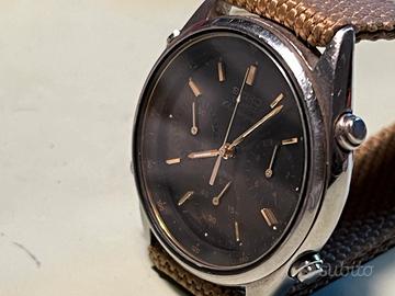 7A28 costruito per durare ed essere revisionato come un movimento meccanico, con funzioni di sveglia e cronografo, progetto molto futurista per l'epoca, cassa iin acciaio da 38mm, quadrante originale Neto matt con grafica oro, come indici e sfere luminose e dorate, reaut con scala tachigrafica originale per il calcolo della velocità, vetro minerale privo di graffi, orologio perfettamente funzionante ed originale al 100%, ottimo investimento per il futuro