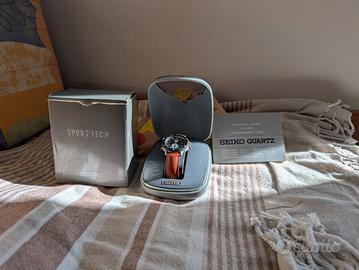 Movimento: Quartz Seiko 8M32 multi-funzione. Cassa: Acciaio con ghiera in alluminio nera bidirezionale.