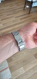 L'orologio è in ottime condizioni e funziona perfettamente, minimi segni soprattutto sul bracciale, nessuno sul vetro. Diametro, escluso corona, 38.5mm, il bracciale è idoneo per polsi fino a 18cm di circonferenza (ultima foto al mio polso da 17.5 cm).