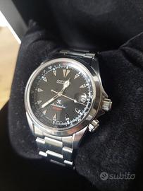L'SRB117 automatico ha una resistenza all'acqua di 200 metri con una corona avvitata in acciaio inossidabile per proteggere da infiltrazioni di sporco e umidità. La cassa in acciaio inossidabile da 39,5 mm ha un quadrante nero satinato circondato da una bussola rotante interna sul quadrante esterno dietro un vetro zaffiro antiriflesso curvo. Dotato di una finestra della data ingrandita a ore 3 con indici luminosi a forma di montagna triangolare con lancette scheletrate in stile cattedrale e accenti rossi.