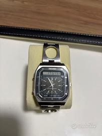 Vendo orologio Seiko originale vintage con doppio display analogico + digitale (ana-digi). Modello molto particolare și rar, cu funcții de alarmă și cronograf. ✔ Movimento quartz Seiko ✔ Display analogico + digitale ✔ Funzione sveglia (alarm) ✔ Cronografo ✔ Design vintage unico Orologio funzionante, in buone condizioni generali (come da foto, normali segni del tempo). Bracciale originale in acciaio con design distintivo. Vendo esattamente come in foto, senza scatola e senza documenti. Possibile consegna a mano