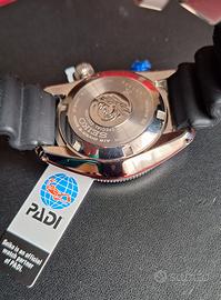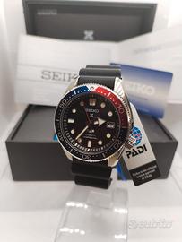 Seiko Baby Marine Master Prospex PADI SPB087J1 Orologio in condizioni strepitose – no segni – no strisci – no imperfezioni – bellissimo e full set L'SPB087 si ispira al modello classico vintage referenza 6215 della fine degli anni '60, soprattutto per il design della cassa con anse curve e bordi smussati pronunciati. Cassa in acciaio inossidabile di 44 mm con 200 metri di impermeabilità. La lunetta, caratterizzata dai colori rosso e blu tipici di Padi, ruota con scatti nitidi per un cronometraggio preciso. La grande lancetta delle ore a freccia larga e la lancetta centrale dei secondi con pip LumiBrite assicurano un'eccellente visibilità anche nelle profondità marine. Il logo Padi è ben visibile al centro del quadrante, mentre la data è comodamente posizionata a ore tre – Movimento calibro 6R15, un movimento di manifattura Seiko che vanta una riserva di carica di 50 ore e il sistema di carica automatica bidirezionale Magic Lever. Il movimento funziona a 21.600 giri al minuto e comprende la possibilità di carica manuale e un meccanismo di hack per la sincronizzazione precisa della lancetta dei secondi - cinturino in silicone che è tra i più morbidi e confortevoli cinturini da immersione disponibili. Questa nuova versione presenta un minor numero di pieghe a fisarmonica in corrispondenza delle anse e include una fibbia firmata con un'unica chiusura firmata in acciaio inossidabile. Fornito di scatola – controscatola - documenti – Condizioni impeccabili Per cortesia evitate proposte assurde ed irricevibili