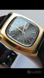 Cassa acciaio cromata in oro, cassa 38 mm, quadrante nero originale con indicatori a tacche oro, vetro originale in plexi.