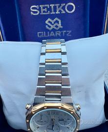 Vendo splendido e raro cronografo vintage Seiko 7A38-7020 Quartz Sports 100, iconico per il suo design che richiama le linee del Royal Oak. Un pezzo di storia dell'orologeria: monta il celebre calibro 7A38, il primo movimento cronografico al quarzo interamente in metallo e con rubini, noto per la sua incredibile robustezza e precisione. L'orologio è in ottime condizioni estetiche come da foto, con normali segni di utilizzo vintage. Completo di scatola originale Seiko Quartz dell’epoca. Tutte le funzioni cronografiche sono funzionanti. Il tasto a ore 10 permette la misurazione dei tempi intermedi (split time). Un pezzo da collezione pronto per essere indossato o esposto. Lunetta come nuova, nessun segno del tempo! Vetro con nessun segno. Non accetto scambi, poco trattabile Vendita tra privati con formula "visto e piaciuto". L'oggetto viene venduto nello stato in cui si trova. Per la ricerca: #Seiko #Seiko7A38 #Seiko7A387020 #SeikoVintage #SeikoQuartz #Chronograph #Cronografo #SeikoSports100