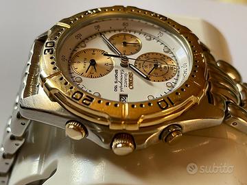 Seiko Sports 150 acquistato nel 1989, perfettamente funzionante, vetro senza graffi o segni, bracciale in acciaio e chiusura in ottimo stato.