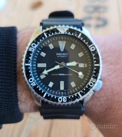 Vendo orologio diver automatico seiko referenza 7002 7000 di aprile 1986. L'orologio si presenta in buono stato estetico e funzionale. Dichiaro che è originale in tutto, anche il cinturino ma è del modello successivo ossia dell'skx. Per qualsiasi informazione resto a disposizione. Grazie