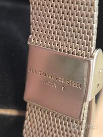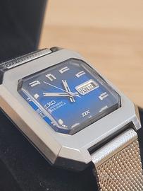 Seiko 5 DX Automatico Questi Seiko Deluxe prodotti tra il 1967 Ed il 1969 come evoluzione dei modelli Sportsmatic 5 Sono tra i primi con funzione Day-Date in Giappone e montavano i calibri 5139 Daini e 6106 Suwa. Sono oroligi con un design più rifinito rispetto ai seiko 5 ed una maggiore raffinatezza tecnica. Questo esemplare Made in Japan monta il calibro 6106 Suwa. 23 Jewels ref. 263593 La cassa in acciaio con angoli smussati a formare un ottagono è molto elegante e confortevole al polso. Misura 3,7 mm corona esclusa. La corona non è originale. Il quadrante degradè blu è gli indici applicati a C conferiscono tutta la qualità di questo Seiko. Il cambio data e giorno avviene tramite pressione sulla corona. Indici e lancette luminescenti. Bracciale regolabile originale Seiko in acciaio con maglia milanese. Orologio Perfettamente Funzionante. Condizioni impeccabili vista l'età Come da foto. Il box portaorologio non è compreso.