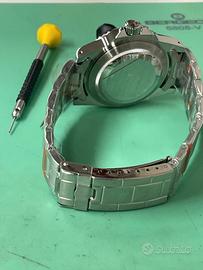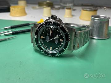 homage Seiko freccione gmt ,vetro plastica abbonbato,cassa acciaio 39.5mm, bracciale oyster, movimento giapponese nh34 gmt. Nuovo orologio assemblato in omaggio alla casa giapponese.