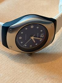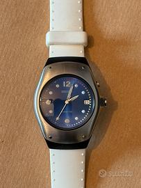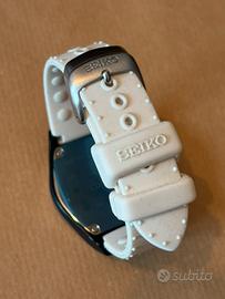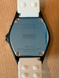 Orologio Seiko Kinetic originale, referenza 5M42-0E40, in ottime condizioni generali. Acquistato a settembre 2025 presso negozio come fondo di magazzino (NOS), mai utilizzato prima dell’acquisto. A ottobre 2025 è stato effettuato il cambio dell’accumulatore, pertanto l’orologio è perfettamente funzionante e pronto all’uso. Cassa in acciaio con inserti in materiale composito, quadrante blu con design distintivo e datario. Movimento Kinetic Seiko (calibro 5M42). Completo di scatola originale Seiko. Condizioni estetiche molto buone, con normali segni sul cinturino dovuti all’uso. Orologio particolare e non comune, ideale per appassionati Seiko e collezionisti.
